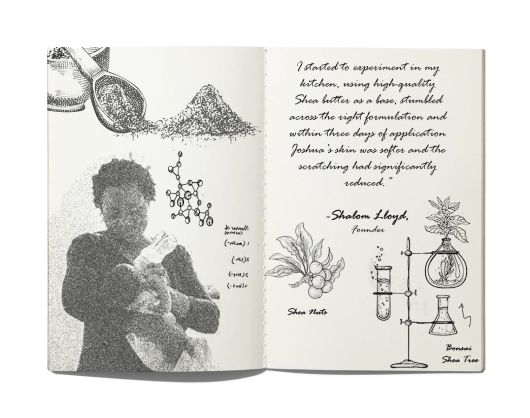 Our founder looked to her African heritage for inspiration, recalling recipes containing all natural ingredients, which have been used in Africa for generations. Shalom started to experiment in her kitchen, using high quality Shea Butter as a main base, stumbled across the right formulation and within three days of application, Joshua's skin became what it should have been from birth!
